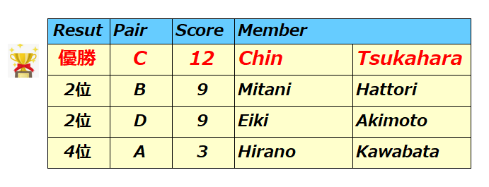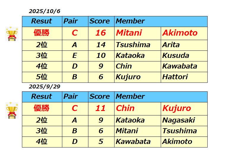 2025年秋のダブルス対抗戦の結果です。