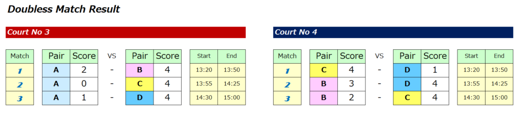 各回、ペア固定での総当たり戦になります。