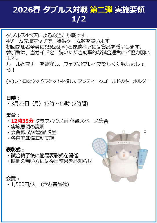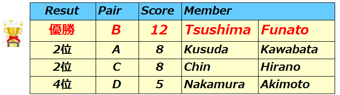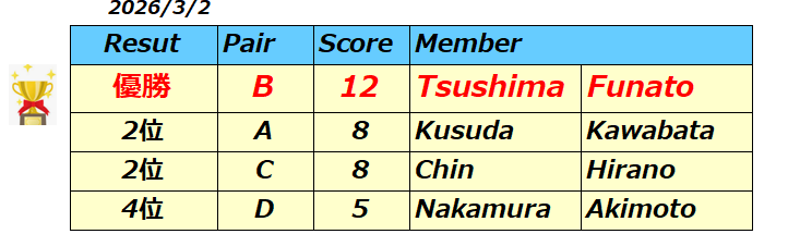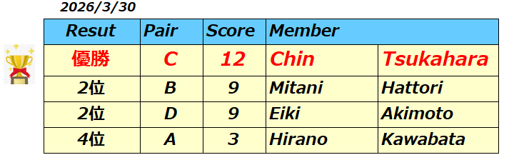 2026年春のダブルス対抗戦の結果です。