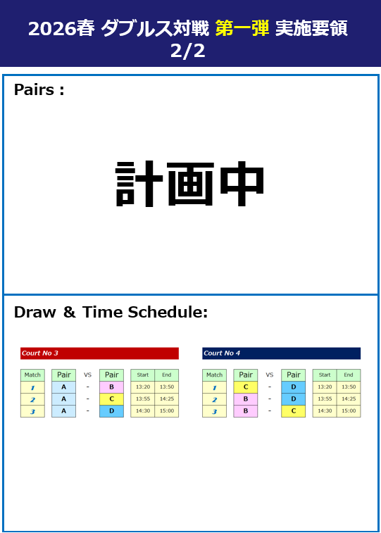 *ペアの確定は、開催直前になります。